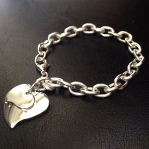 A timeless piece, this heart-tag bracelet features rolo links in sterling silver. Dangling near the clasp, a Beautiful heart-shaped tag. It is new but I don't have the box.