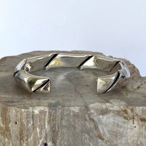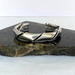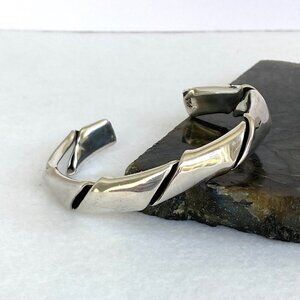 Sterling Silver 925 Heavy Chunky Oval Twisted Cuff Bracelet Sz 6.5" 33g