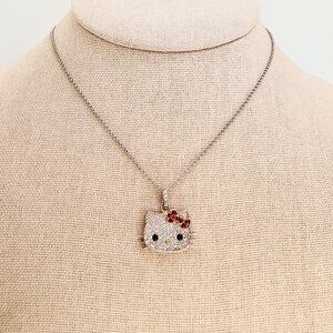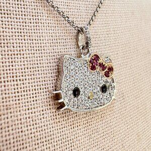 Sterling Silver 925 Hello Kitty Cubic Zirconia Pendant Necklace 16" Adjustable