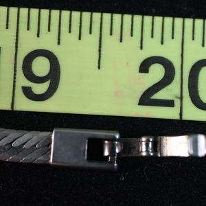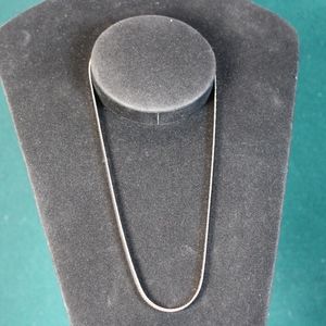 This Sterling Silver 925 Chain is a Herringbone chain link The chain weighs 18.3 grams and is 19.5” in length. It is stamped “925” on the clasp end. The clasp is fold and snap close fitting which is likely to be very secure from becoming undone. When closed the clasp lays flat & not likely to be snagged on clothing or hair.