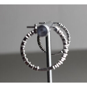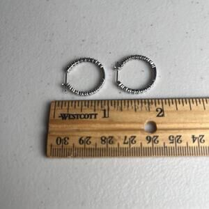 Sterling Silver 925 Hoops Hinged Latch Back Textured Starburst Dainty