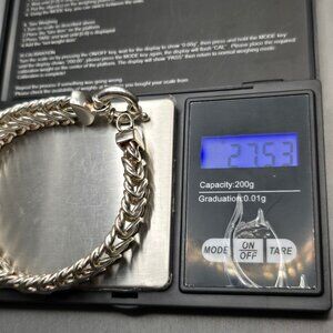 Striking sterling silver bracelet in a classic Byzantine weave, crafted in Italy and signed with a circled “B” maker’s mark. Measures 7" and weighs a substantial 27.53g. Marked 925 and acid-tested for purity. Features a secure spring ring clasp and intricate interlocking links. A bold, timeless piece for collectors and lovers of artisan silver. Elegant, durable, and rich in texture.