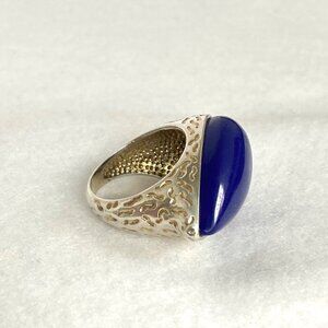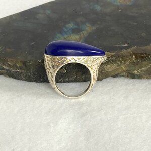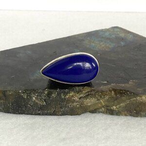 Sterling Silver 925 Italy Large Lapis Lazuli East West Teardrop Cocktail Ring