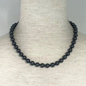 Sterling Silver 925 Knotted Single Strand 8MM Round Deep Green Simulated Pearl Necklace