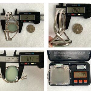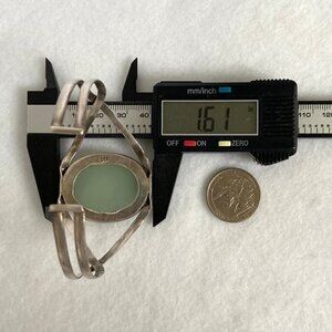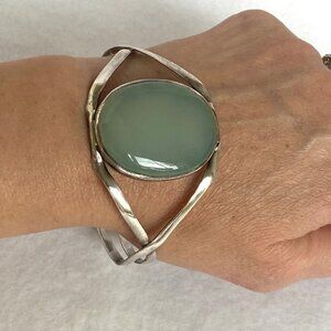 Sterling Silver 925 Large Oval Green Chalcedony Split Band Cuff Bracelet Sz 8"