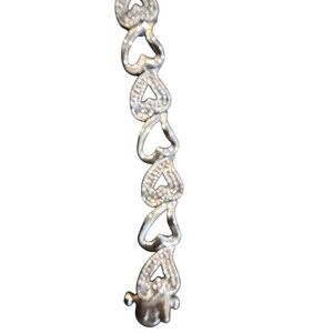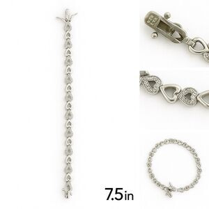 Sterling Silver 925 MIK Italian Heart Link Bracelet | Milor Italy CZ Accents 7.5