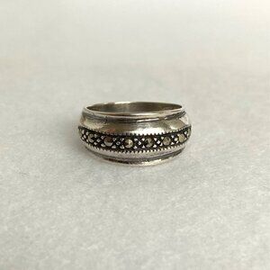 Sterling Silver 925 Marcasite Domed 8MM Tapered Band Ring Size 5