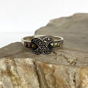 Sterling Silver 925 Marcasite X Criss Cross Knot Band Ring Sz 7.5
