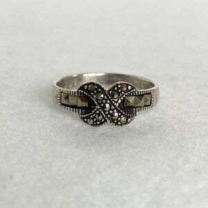Sterling Silver 925 Dainty Marcasite X Criss Cross Knot Band Ring