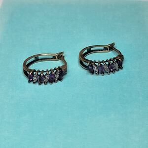 Sterling Silver 925 Marquise Cut Amethyst Diamond Chip Hoop Circle Earrings