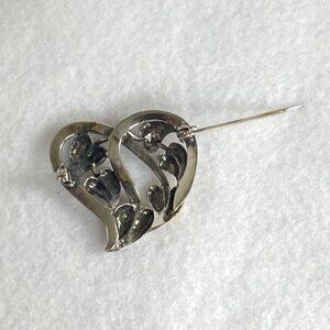 Sterling Silver 925 Mixed Metal Gold Vermeil Foliage Leaf Floral Heart Brooch Pin