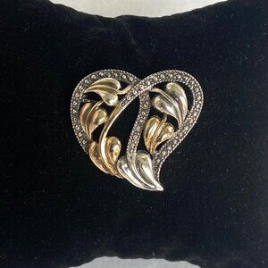Sterling Silver 925 Mixed Metal Gold Vermeil Foliage Leaf Floral Heart Brooch