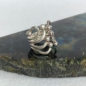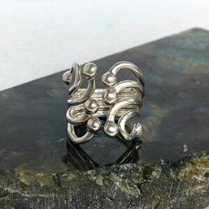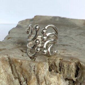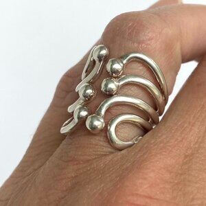 Sterling Silver 925 Modernist ATI Thailand Freeform Wide Ball Bypass Ring