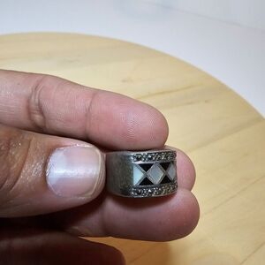 Sterling Silver 925 Mother Of Pearl,Onyx,Marcasite Band Ring Size 7 8 Grams shows signs of wear such as scratches and tarnishing sold as is see pictures for reference