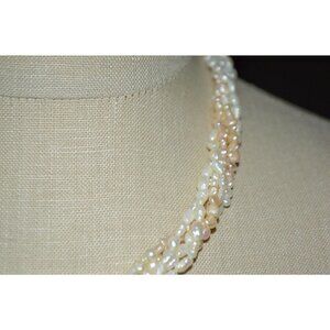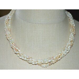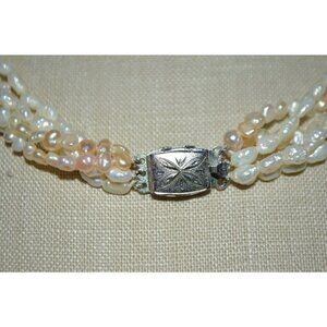 Sterling Silver .925 Multi Color Beige Genuine Pearl Choker Necklace Vintage