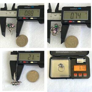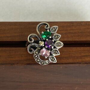 Sterling Silver 925 Multi Colored CZ Marcasite Floral Flower Cluster Ring Sz 8