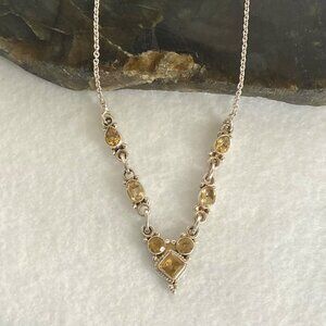 Sterling Silver 925 Multi Gemstone Citrine Collar V Necklace Cable Chain 17"