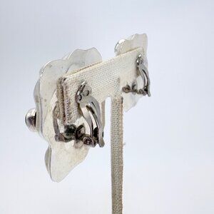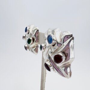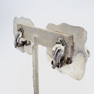 Sterling Silver 925 Multicolor Gemstone Puffed Clip On Earrings 1.25" Length