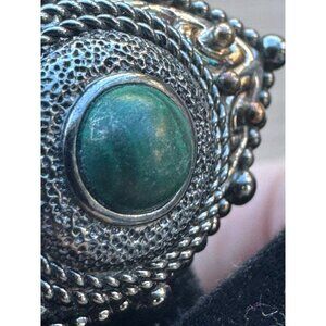 Sterling Silver 925 Ornate Ring w/ Malachite Center & Amethyst Accents Bali Boho