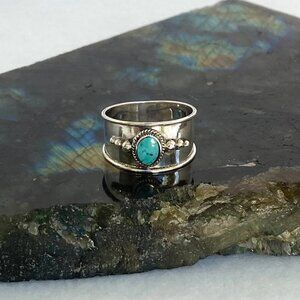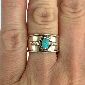 Sterling Silver 925 Oval Bezel Set Turquoise Cabochon Cigar Band Ring Sz 6.75
