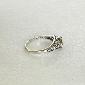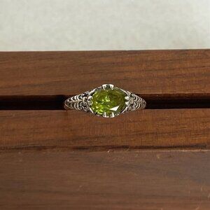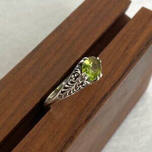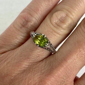 Sterling Silver 925 Oval Double Prong Set Peridot Filigree Band Ring Sz 6.5