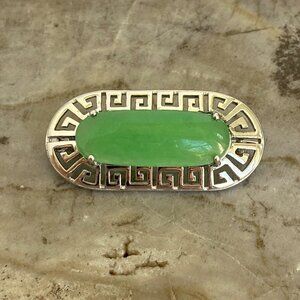 Sterling Silver 925 Oval Prong Set Green Jadeite Greek Key Brooch C Clasp