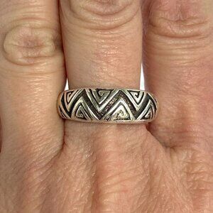 Sterling Silver 925 Oxidized Geometric Maze Pattern Dome Style Band Ring Sz 8.75