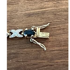 Sterling Silver 925 PAJ China Bracelet Gold Vermeil Black Stone Tennis Link 7.5”
