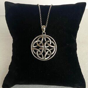 Sterling Silver 925 PAJ Round Celtic Trinity Knot Pendant Necklace 18" Chain