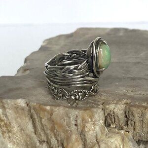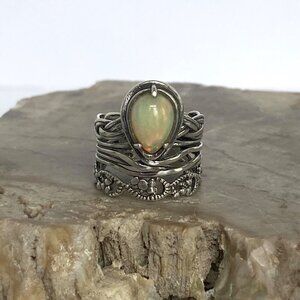 Sterling Silver 925 PZ Paz Creations Israel Modernist Prong Set Teardrop Opal Wide Lace Band Ring