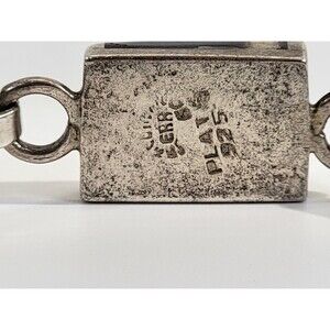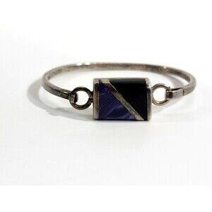 Sterling silver braceletThere are markings on the back, but only some of it is legible. What I can make out is the following: "ERR Plata 925"Featyures what appears to be purple agate with black onyxRectangular charm on top measures .8" x .56"Interior of the bracelet measures 2.2" straight across the widest partExterior of the bracelet measures 2.41" straight across the widest partWeighs 22.1gGreat preowned condition with minor wear as you'd expect from use. Please see photos for details; what you see is what you'll receive.