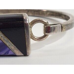Sterling Silver .925 Plata ERR Purple Agate Black Onyx Bangle Bracelet Gemstone