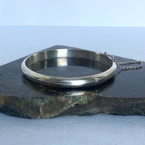 Sterling Silver 925 Polished Round Hinged Stacking Bangle Bracelet 7.25"