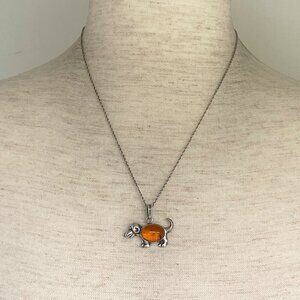 Sterling Silver 925 Puppy Dog Hound Dog Baltic Amber Pendant Necklace 18" Chain