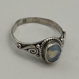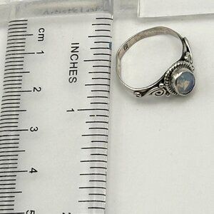 Sterling Silver 925 Rainbow Stone Ring Size 5.5 Artisan Scroll Design