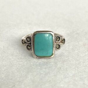 Sterling Silver 925 Rectangular Faux Turquoise Inlay Marcasite Shank Ring Sz 6.5