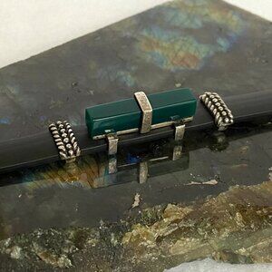 Sterling Silver 925 Rectangular Green Acrylic Black Banded Bracelet 7.5"