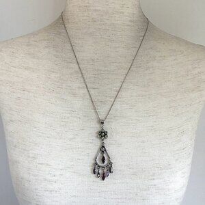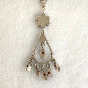 Sterling Silver 925 Red Garnet & Peridot Chandelier Pendant Necklace 20" Chain