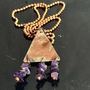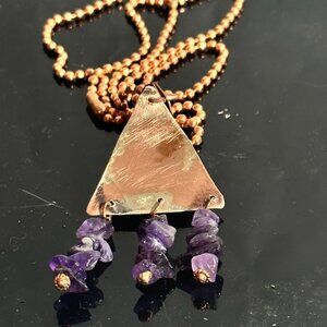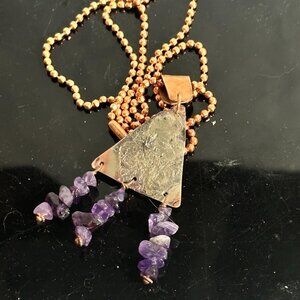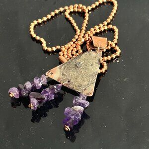 Sterling Silver 925 Reticulated Copper Amethyst Pendant Necklace rustic Gift