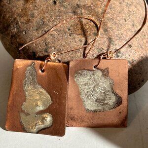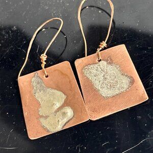 Sterling Silver 925 Reticulated Copper Earrings Rustic Gift Handmade Brutalist