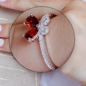Sterling Silver 925 Rhodium Plated Red Butterfly CZ Ring