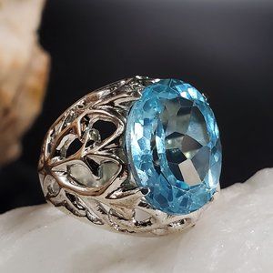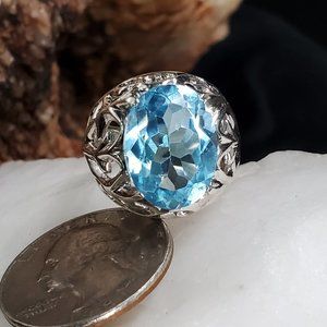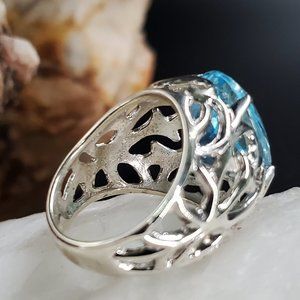 Sterling Silver 925 Ring Large Genuine Blue Topaz Gemstone Gift for Lady