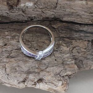 Sterling Silver 925 Ring Quartz Amethyst Bow Knot Crossover Purple Clear Square