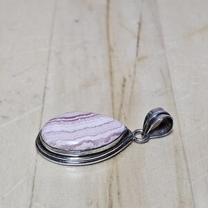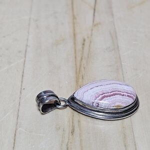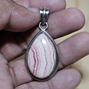 Sterling Silver 925 Rodochrochrosite Tear Drop Pendant 1.5 In Long 17 Grams shows signs of wear such as scratches and tarnishing sold as is see pictures for reference