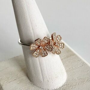 Sterling Silver 925 Rose Gold Plated Crystal Daisy Flowers Ring Size 8