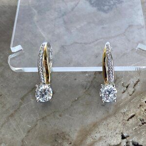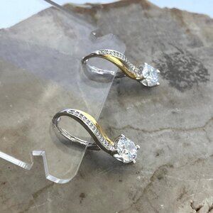 Sterling Silver 925 Round Cubic Zirconia Vermeil Two-tone Leverback Earrings