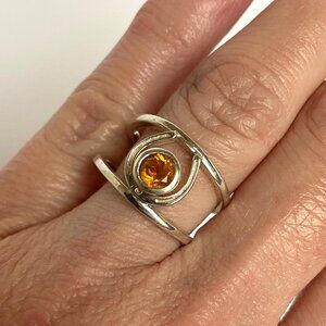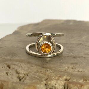 Sterling Silver 925 Round Faceted Citrine Gemstone Horseshoe Ring Sz 6.5