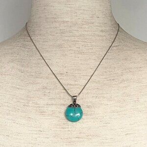 Sterling Silver 925 Round Faux Turquoise Bali Style Pendant Necklace 17" Chain