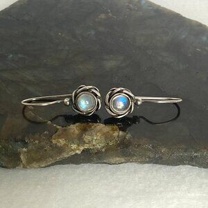 Sterling Silver 925 Round Floral Moonstone Drop Dangle Earrings Braided Setting