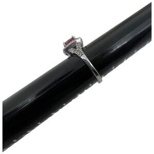 Sterling Silver 925 Ruby Red CZ Halo Ring Art Deco Style Size 6.5